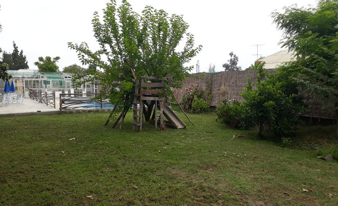 Con un precioso sauce en el jardín, una gran terraza, piscina para adultos y niños.